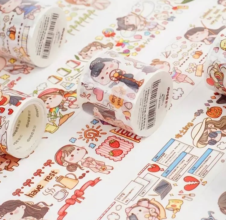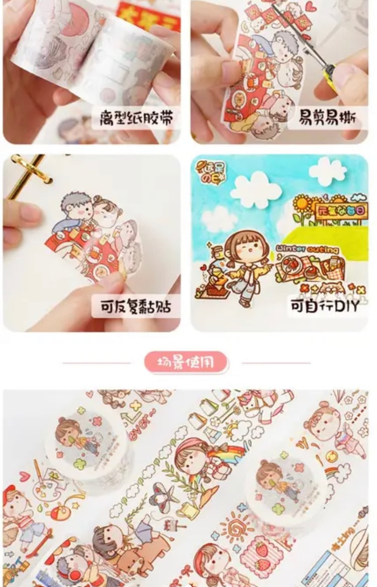 303A 海外 小麻薯 可愛い少女 剥離紙付き マスキングテープ